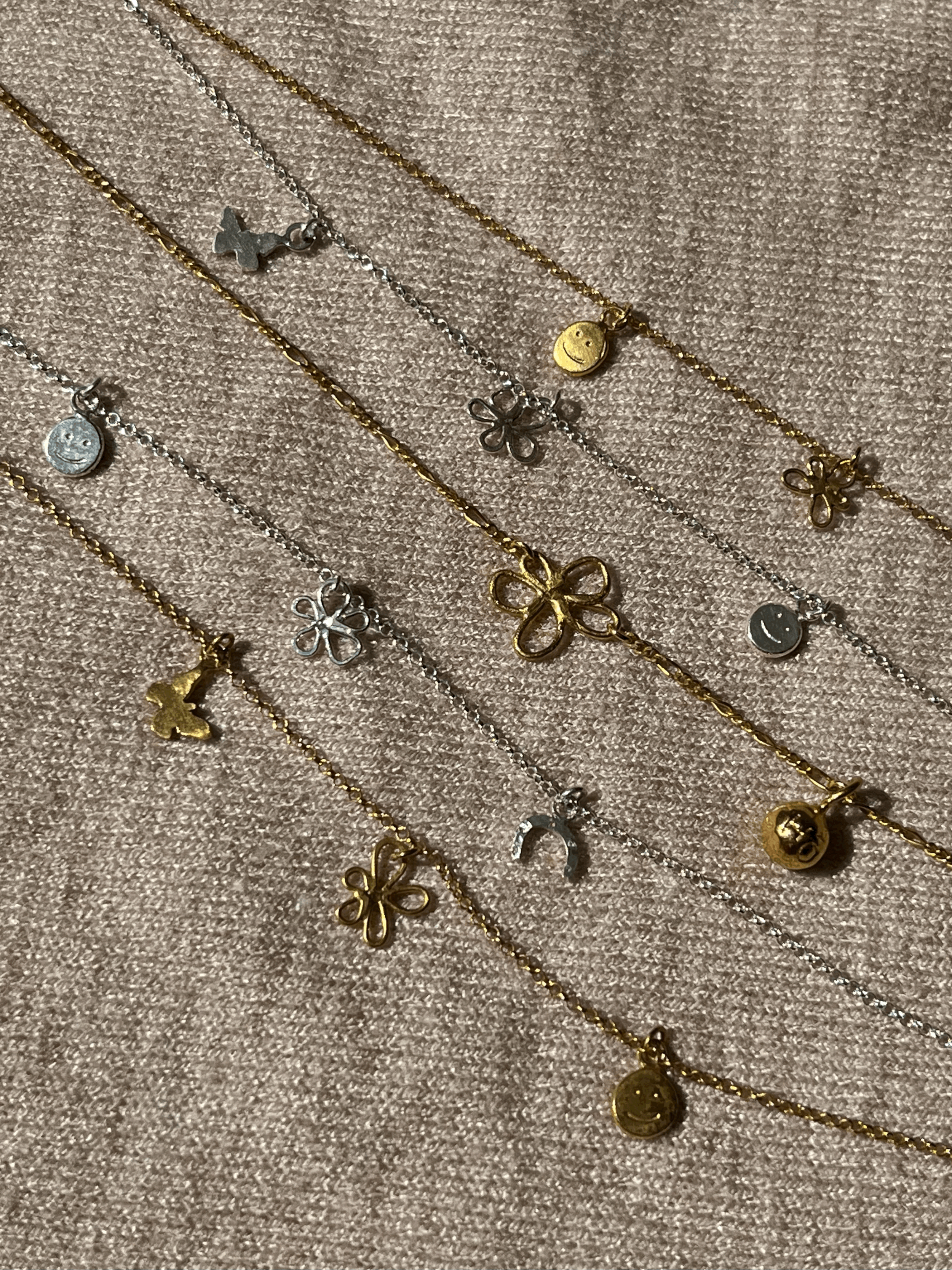 Introducing the enchanting result of a harmonious collaboration between two creative powerhouses: the latest necklace collection born from the union of SKEN Studios and CHŌ. Rooted in sustainability and ignited by artistic innovation, SKEN Studios, the ingenious jewelry brand founded by the visionary Sabira Silcock, has teamed up with CHŌ to craft a collection that exudes an aura of playfulness and whimsy, while celebrating nature's timeless beauty.